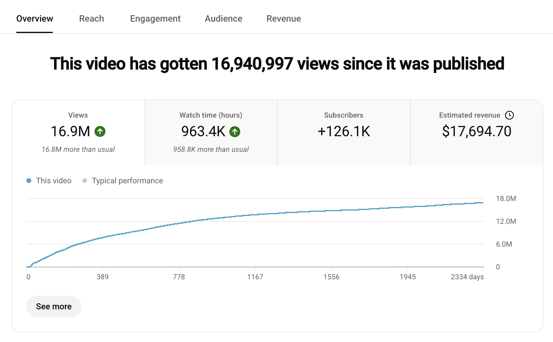 - One video reached 17 million views and added 126,000 subscribers alone